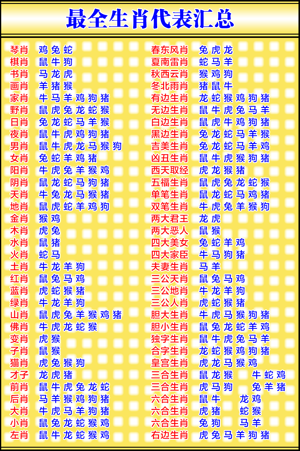 | 家禽:马 羊 猪 狗 | 野兽:龙 蛇 虎 兔 |